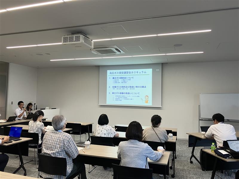 In this workshop, we invited Iwatani Sangyo Co., Ltd., Safety Department, and Mr. Hirokazu Sakuma, who was in charge of security, as lecturers, and talked about the following.